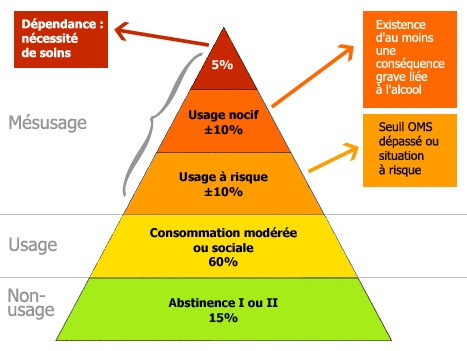 La Pyramide de Skinner (voir ci-dessous) répertorie les usagers en cinq catégories. Dans leur travail, les membres du GREA se concentrent en priorité sur les publics situés au sommet de la pyramide. Chez ces personnes, la consommation de quantité importante d’alcool va largement influencer leur vie quotidienne, que ce soit au travail, en famille ou lors des sorties.